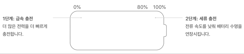물론 12W USB 전원 어댑터를 이용하면 기존 5W USB 전원 어댑터보다 빨리 충전되지만, 급속 충전이라고 부르지는 않습니다. Apple에서는 18W 충전을 급속 충전으로 부릅니다. 이 18W 급속 충전은 iPhone 배터리를 약 30분 만에 최대 50%까지 충전할 수 있습니다.