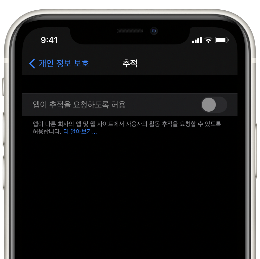 “앱이 추적을 요청하도록 허용” 옵션이 꺼져있는 기기에서는 추적을 요청하는 모든 앱이 기본적으로 사용자를 추적할 수 없으며, IDFA (Identifier for Advertisers)라는 기기 고유 추적 번호에 액세스 할 수 없습니다. 또한 앱은 이메일 주소와 같이 사용자나 기기를 식별하는 다른 정보를 사용하여 추적할 수 없습니다.