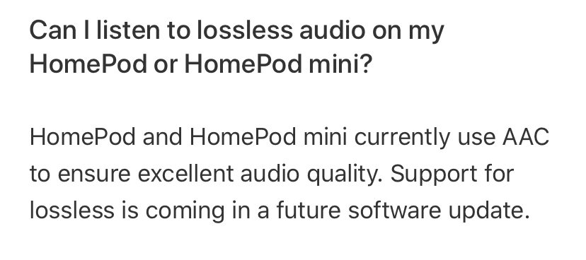 Apple은 공식 지원 문서를 통해 HomePod 및 HomePod mini는 향후 소프트웨어 업데이트를 통해 Apple Music 무손실 오디오를 지원할 것이라고 발표했습니다. HomePod 및 HomePod mini의 Apple Music 무손실 오디오 지원 발표에도 불구하고, AirPods, AirPods Pro, AirPods Max의 무손실 오디오 지원은 불확실합니다.