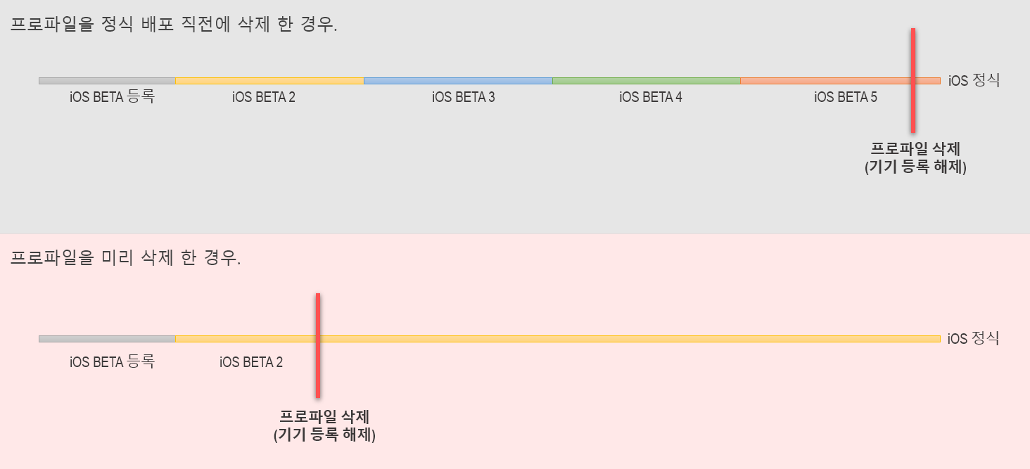 프로파일을 일찍 삭제하는 경우, 이후 개선된 베타 버전은 제공받지 못하며, 해당 버전에서 머무르게 된다.