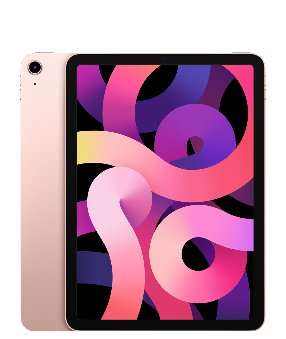 기존의 iPad Air에서 가장 크게 달라진 점은 바로 디자인입니다. 3세대 iPad Air가 10.5형 iPad Pro를 기반으로 한 폼팩터를 사용하여, 10.5형 iPad Pro의 디자인과 액세서리를 사용했다면 이 새로운 iPad Air는 11형 iPad Pro를 기반으로 하고 있습니다. 기존의 iPad Air과는 다르게, 둥근 일반적으로 생각하는 iPad의 디자인에서 iPad Pro에서 볼 수 있던, 각진 모서리, 올-스크린 10.9형 Liquid Retina Display가 적용되었습니다. Wi-Fi 모델의 무게는 458g, Wi-FI + Celluar 모델의 무게는 460g이며, 가로 길이는 178.5mm, 세로 길이는 247.6mm, 두께는 6.1mm로 11형 iPad Pro와 같고, iPad Air의 상단 Touch ID 센서가 내장된 전원 버튼, 마이크가 있습니다. 옆면에는 음량 조절 버튼, Apple Pencil을 충전할 수 있는 자석식 커넥터, 그리고 Wi-Fi + Cellular 모델에 적용되는 Nano-SIM 트레이가 있습니다. 기기의 전면에는 7MP FaceTime HD 카메라가 있고, 후면에는 12MP 와이드 카메라와 Smart Keyboard Folio, Magic Keyboard을 연결할 때 사용하는 Smart Connector이 있습니다.