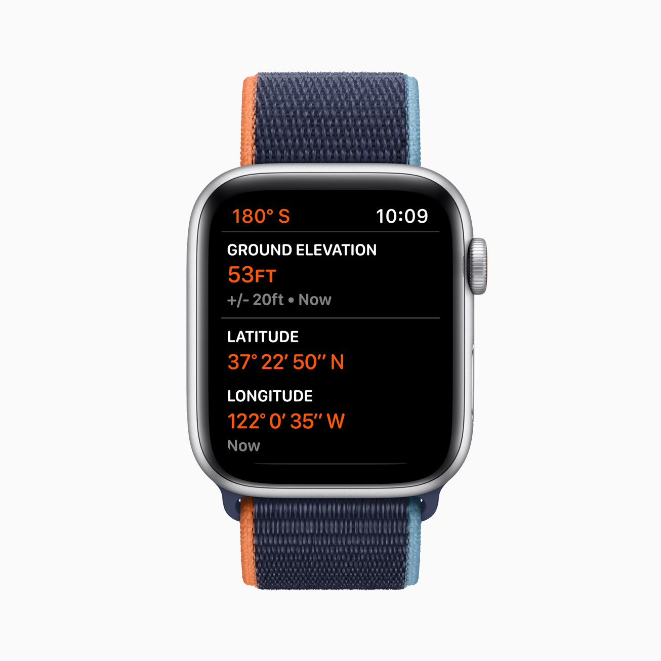 차세대 상시 감지형 고도계는 새로운 전력 효율적인 기압 고도계를 GPS 및 근방 Wi-Fi 네트워크와 함께 사용해 하루 종일 고도를 실시간으로 제공합니다. 지면에서 ±1피트(30.48센티) 이내의 근소한 고도 변화를 감지하며 새로운 시계 페이스 컴플리케이션 또는 운동 측정 결과로 표시할 수 있습니다.