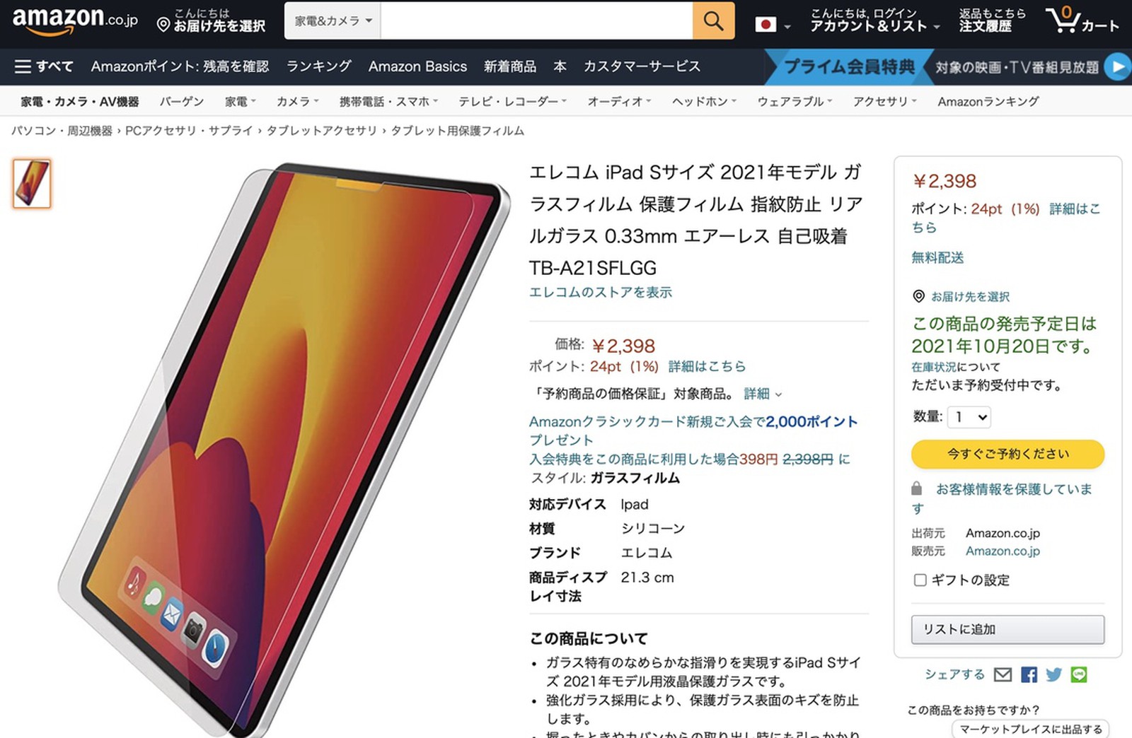 등록되었던 iPad mini 6용 강화유리는 10월 20일부터 판매될 예정이었습니다. iPad mini 6는 올해 안에 출시될 예정이지만 자세한 날짜는 알 수 없었는데 액세서리 판매 일정을 통해 iPad mini 6의 공개는 10월인 것으로 보입니다.