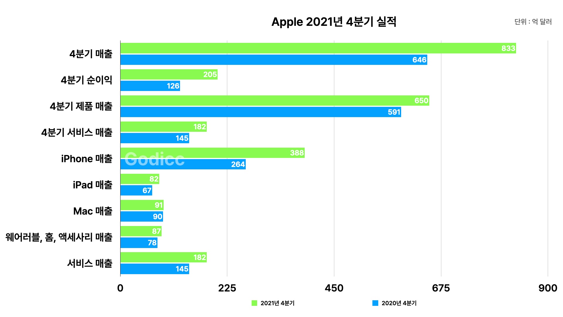 | 4분기 제품 매출액 | 76조 1,275억 원 (650억 달러) 전년 동기 대비 30% 증가 |