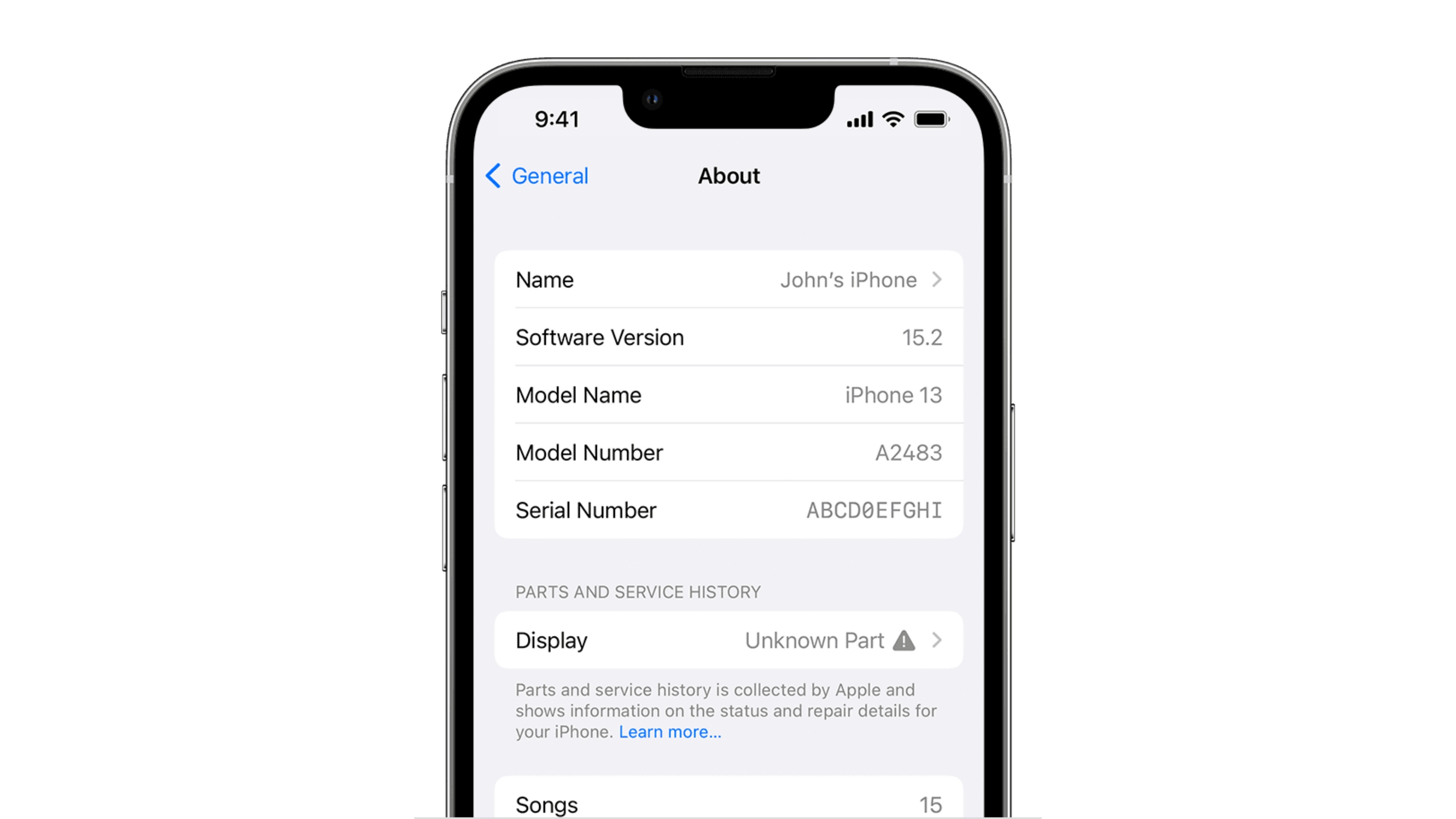 iOS 15.2 이전 버전을 사용하는 경우, 사용자는 교체된 부품이 알 수 없는 부품인지만 확인할 수 있습니다.