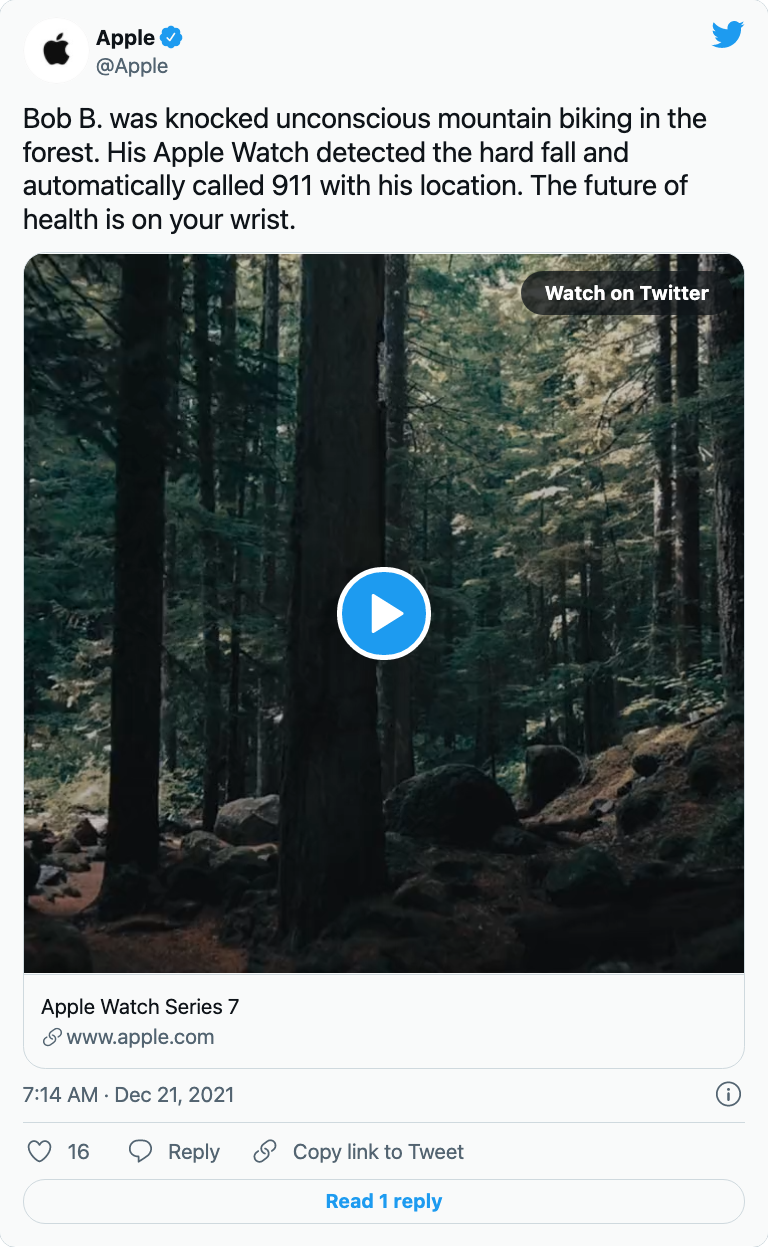 Apple은 “911” 광고 영상을 공개한 뒤 넘어짐 감지 기능으로 긴급 서비스에 직접 전화한 광고를 트위터에 공개했습니다.