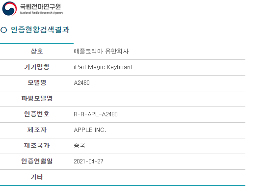 추가로 애플코리아는 지난 4월 27일에 신형 Magic Keyboard 전파 인증을 완료했습니다.