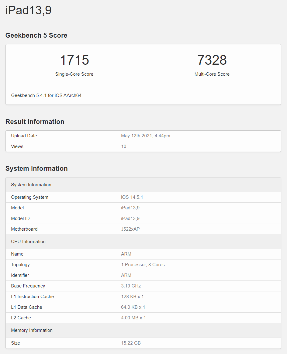 Geekbench 5 벤치마크 결과 M1 iPad Pro는 지난해 가을 출시한 M1 Mac과 사실상 동일한 성능을 가진 것으로 확인되었습니다. 대부분의 사용자들은 M1 iPad Pro가 Mac에 탑재되었던 M1에 성능 제한을 걸어둘 것으로 예상했지만, 사실상 동일한 성능을 가진 M1이 탑재되었습니다.